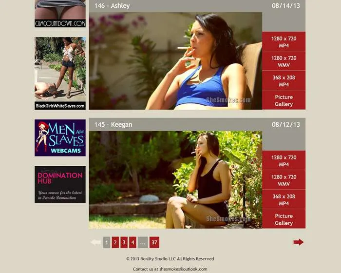 The design is simple and I like how the colors are a smoky gray and a bright red, just like the cherry of a burning cigarette. Surfing is a breeze, with the latest updates on the homepage. There are 148 episodes, each with a high-res photo set and a video and you'll get an HD version for each flick. There's also a smaller MP4, which is perfect for mobiles.