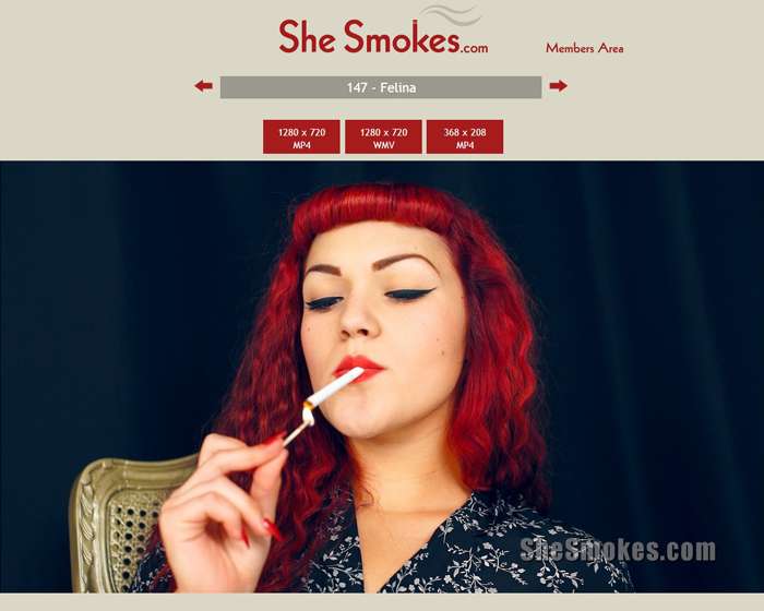 Updates are frequent, with 14 episodes in a month's time. I would like to see a few navigation features implemented, like content tags or a favorites section. I tried using the basic search to find blonde women, but it didn't return any results (and there are plenty of blondes here). The initial cost is above average, but the rebill is nice and reasonable. With frequent updates and excellent quality, I think She Smokes will appeal to avid smoking fetishists.
